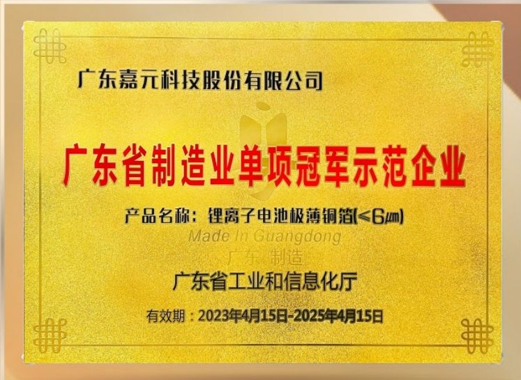 Demonstration enterprise of individual championship in manufacturing industry in Guangdong Province